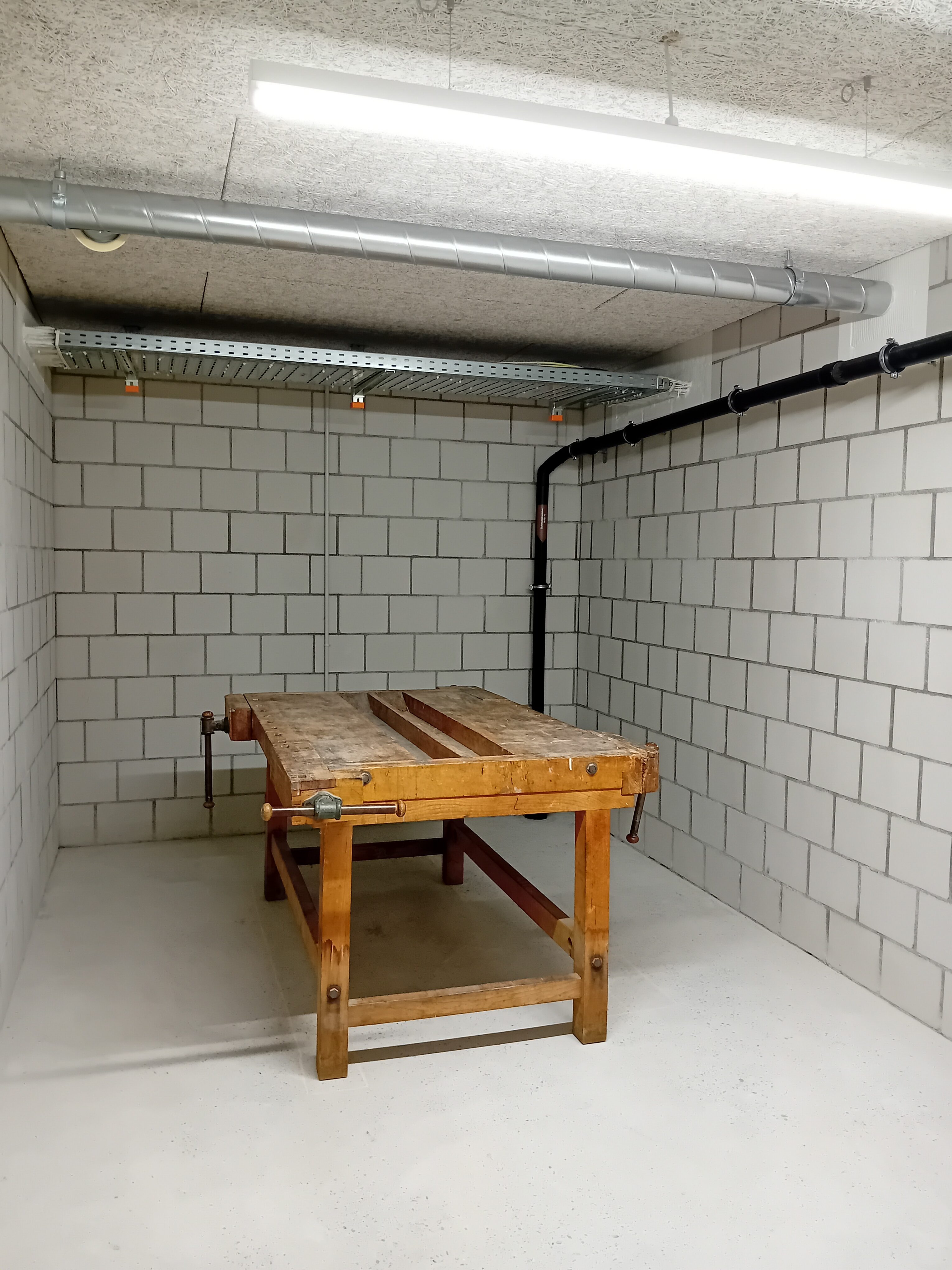 Bewohnende der Siedlung R118 können einen Raum ausserhalb ihrer Wohnungen nutzen, um kleine Bastel- und Reparaturarbeiten durchzuführen.